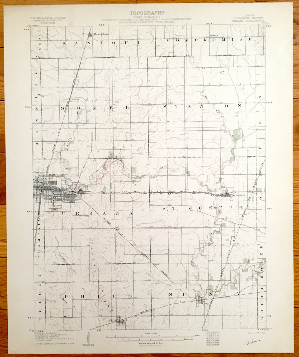 Antique Champaign Urbana Illinois 1906 Us Geological Survey Etsy Uk